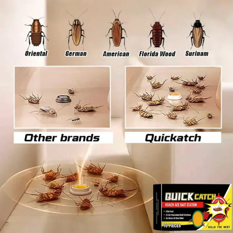 Tired of seeing cockroaches crawling around your kitchen or bathroom? Meet the Quickatch™ Roach Ace Bait Stations — the discreet, long-lasting solution that wipes out roaches from the source, not just the surface.