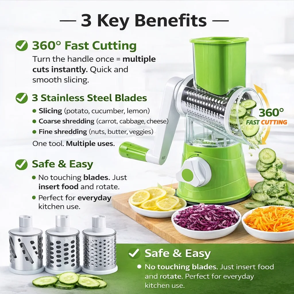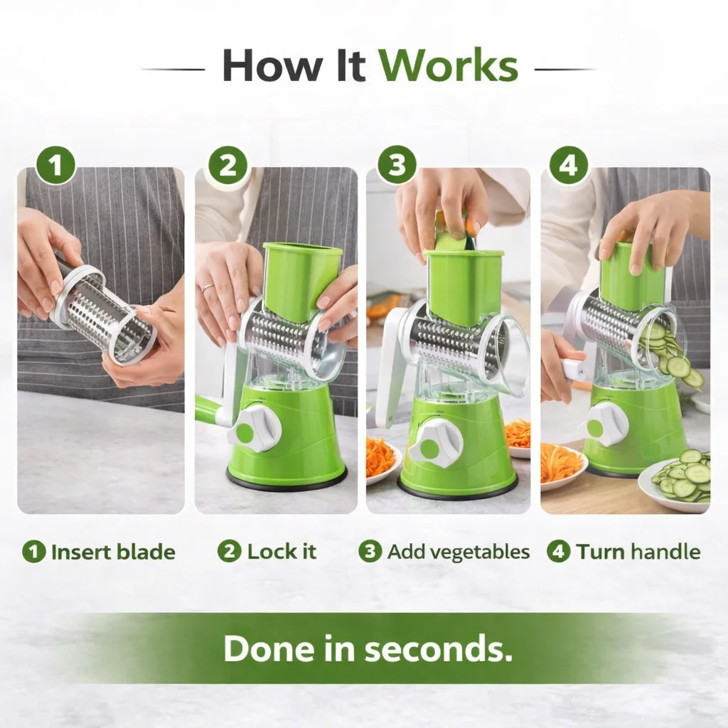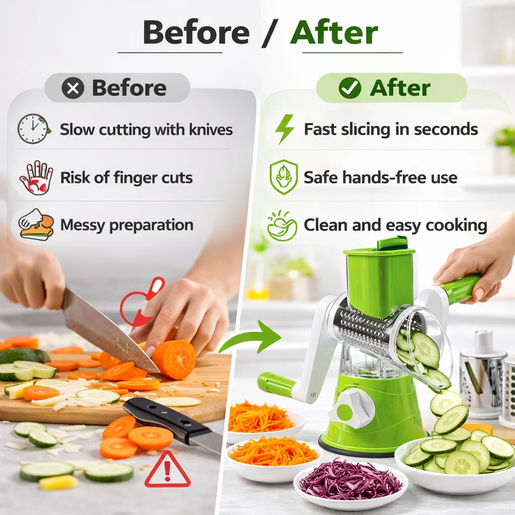 🥕 Cut, Slice & Grate in Seconds — No Knives. No Stress.