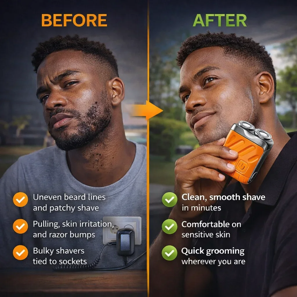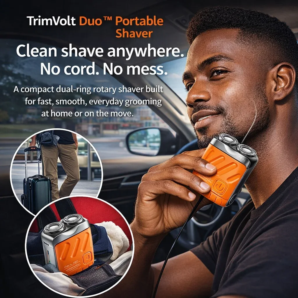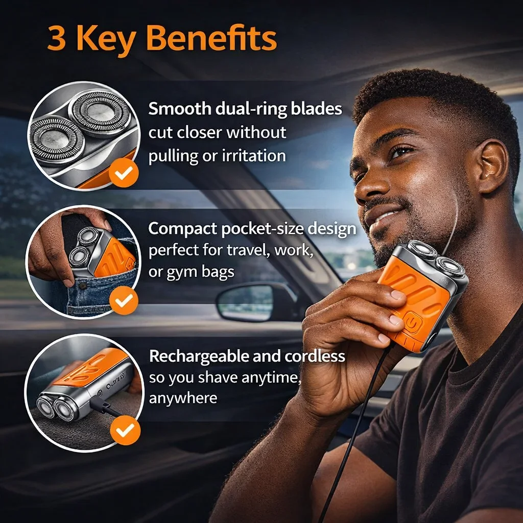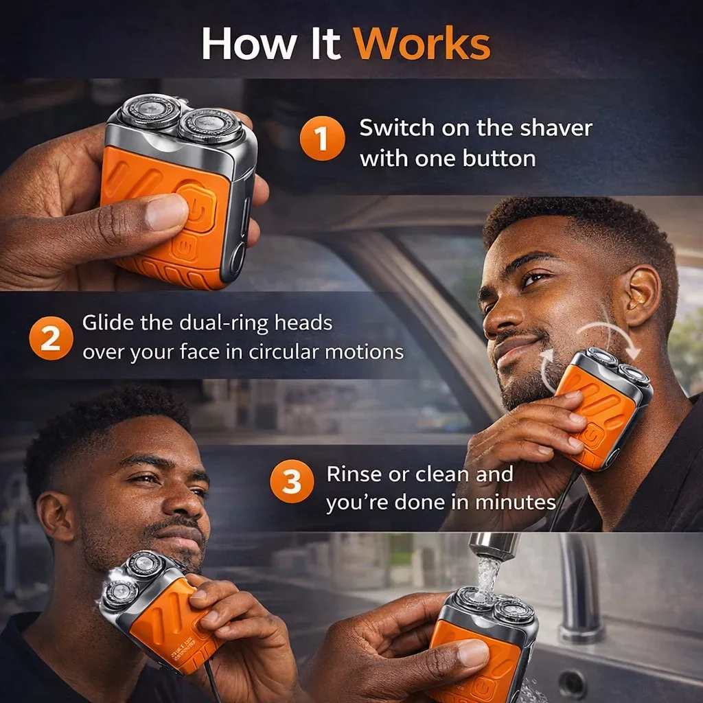 A compact dual-ring rotary shaver built for fast, smooth, everyday grooming at home or on the move.
