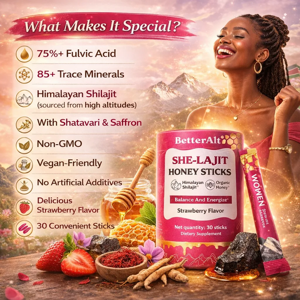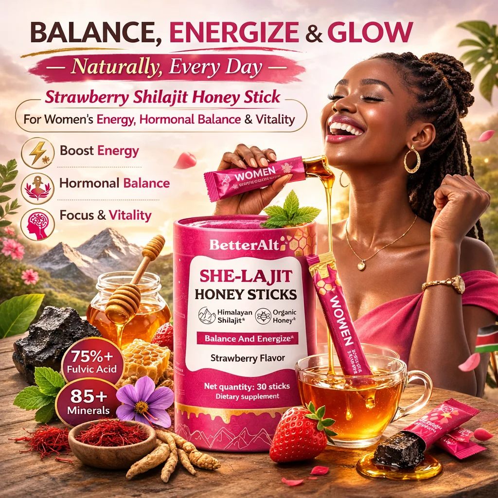 A delicious Strawberry Shilajit Honey Stick specially formulated for women — combining Himalayan Shilajit, Shatavari & Saffron to support energy, hormonal balance, focus, and vitality in one convenient daily stick.