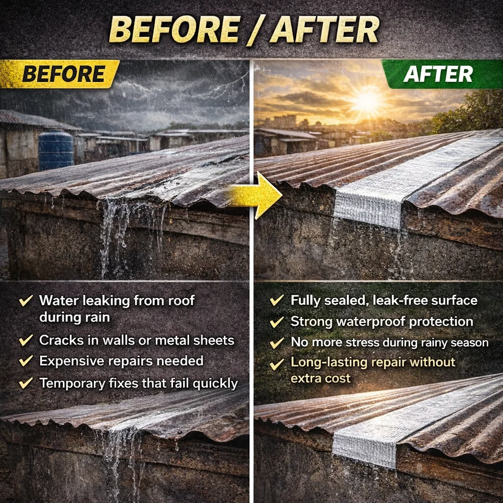 ✔ Works on mabati (metal roofs), tanks, pipes & walls