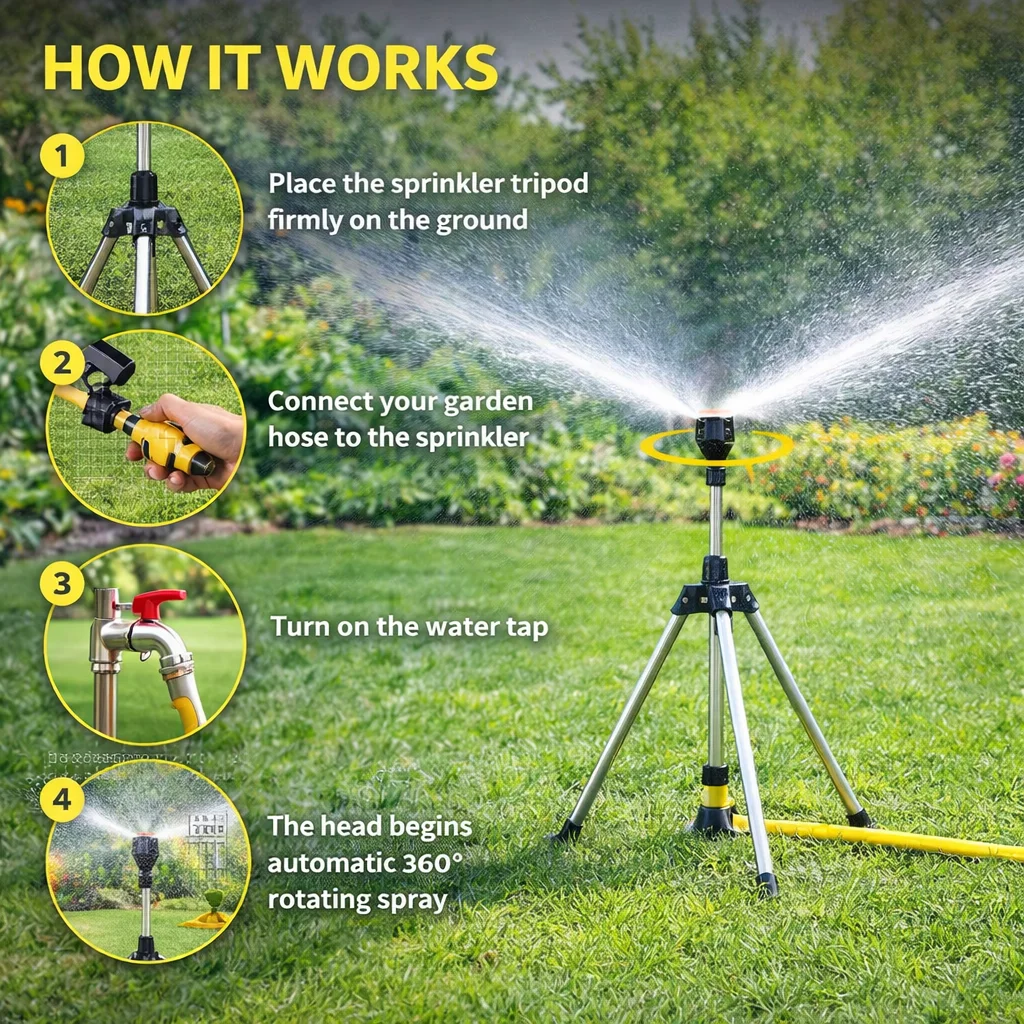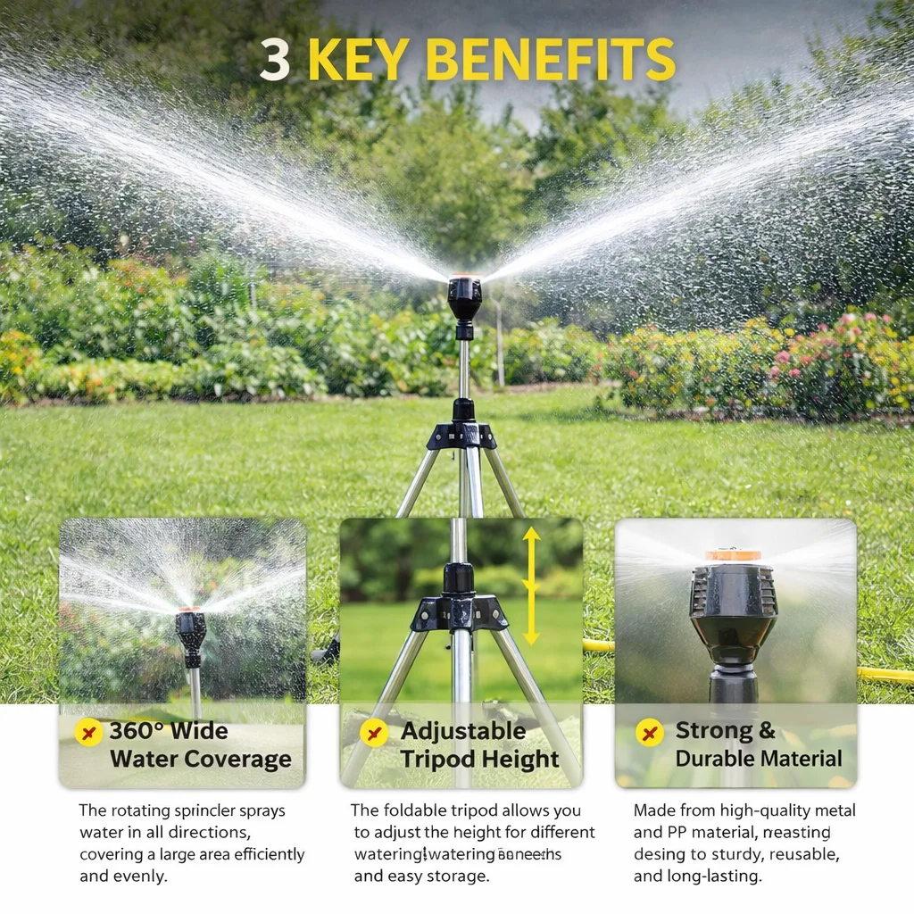 Its powerful 360° rotating spray distributes water evenly across a wide area, saving time, water, and effort while keeping your plants perfectly hydrated.
