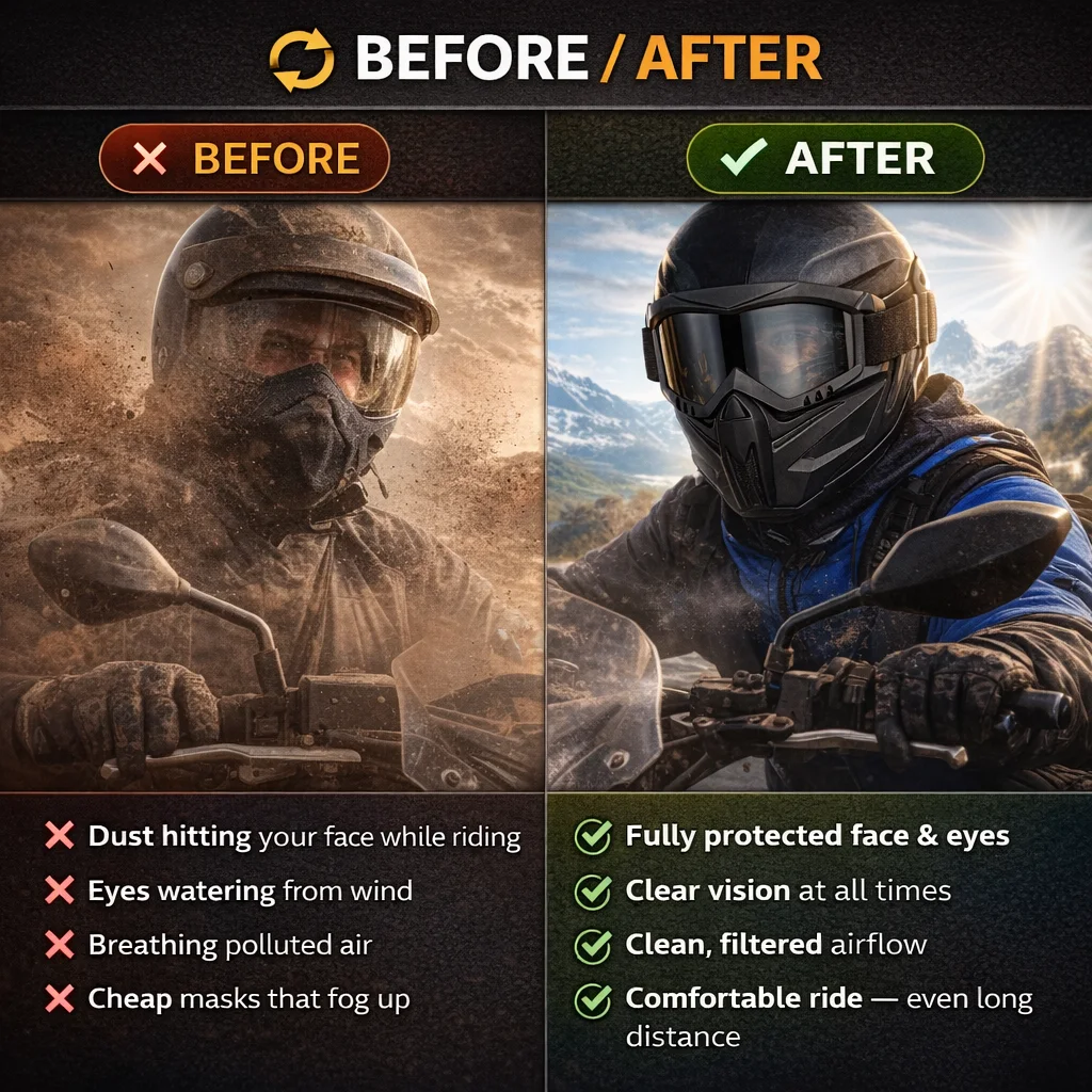 ✔ Protects against dusty roads & pollution