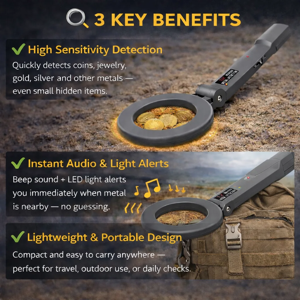 This high-sensitivity handheld metal detector helps you find coins, jewelry, and valuable metals fast — no experience needed.