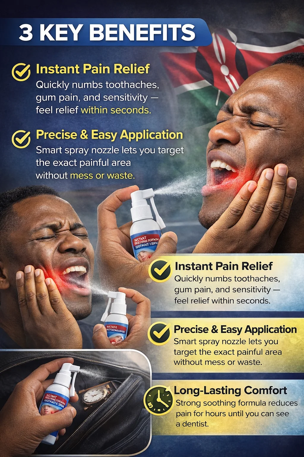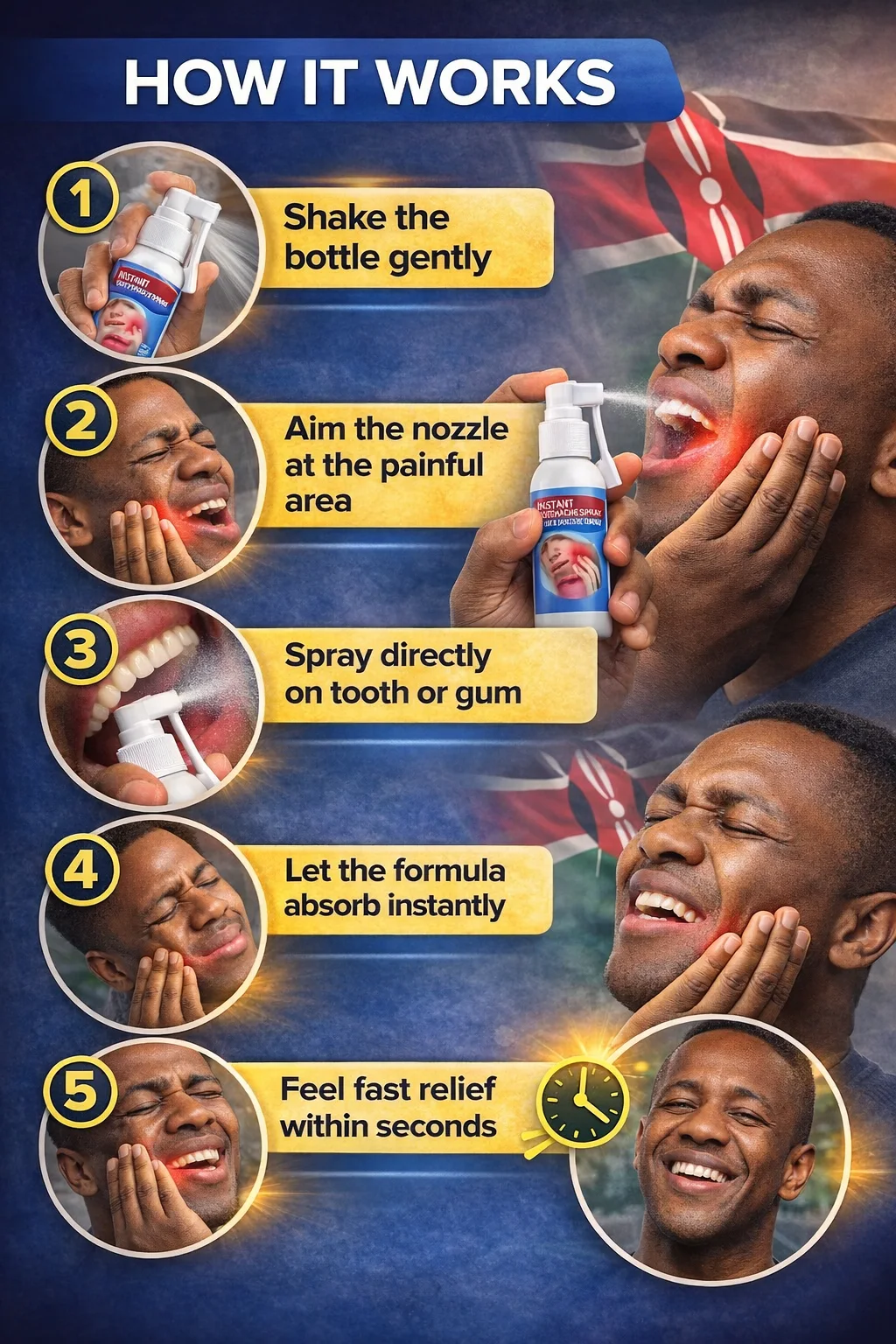 Powerful instant spray formula that targets toothaches, gum pain, and oral discomfort fast — so you can get back to your day without suffering.