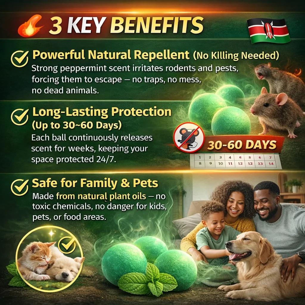 These powerful mint-based repellent balls release a strong scent that rodents hate — forcing them to leave immediately and stay away.